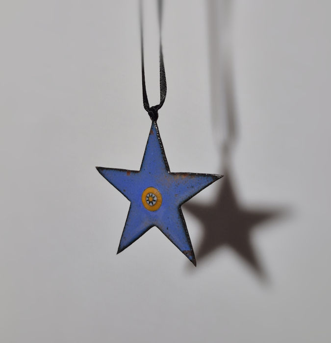 These unique, one-of-a-kind decorations are beautiful art objects that begin life as a simple sheet of copper. Each piece is carefully cut by hand using a jeweller’s saw, then drilled to hang perfectly balanced on a ribbon.