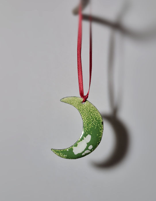 Green Copper & Enamel Moon Decoration